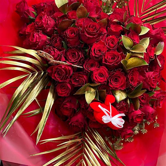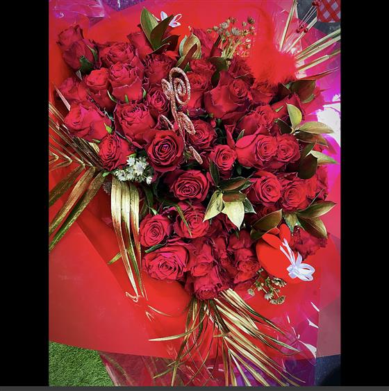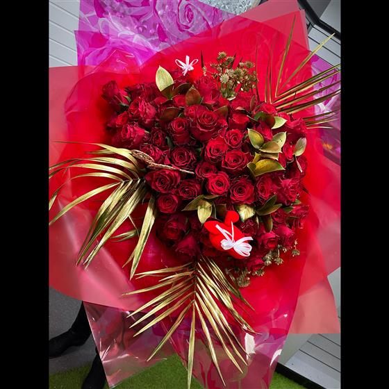 This bespoke 100 red rose bouquet is the ultimate I LOVE YOU.. Treat your special one to a show stopping, luxury bouquet.